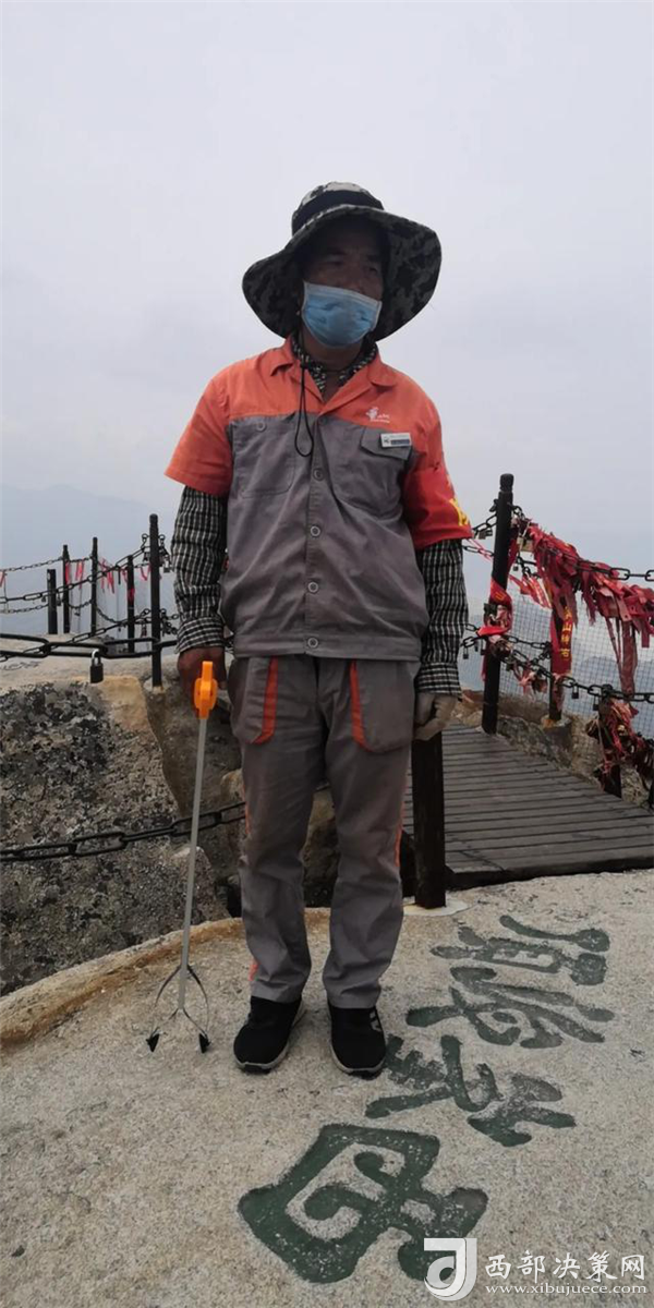 楊群社是景區(qū)一名環(huán)衛(wèi)工,負(fù)責(zé)華山西峰頂區(qū)域的衛(wèi)生保潔工作。為了給游客創(chuàng)造一個(gè)干凈整潔的游覽環(huán)境,熾熱的陽(yáng)光下,楊群社在自己的區(qū)域內(nèi)不停地來(lái)回?fù)焓袄?/div>