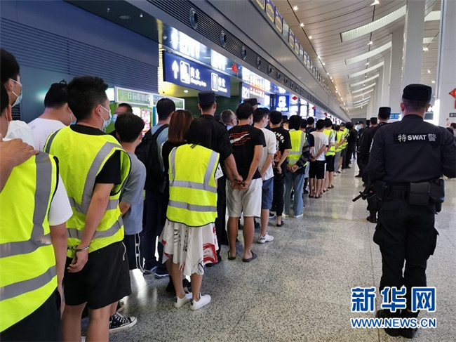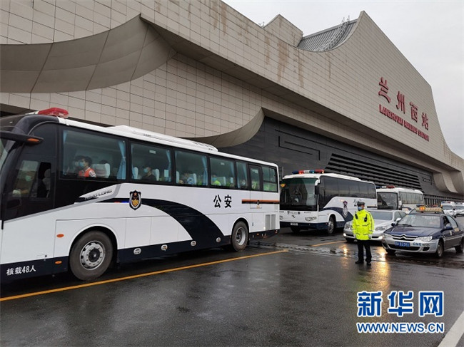 7月11日19時(shí),在位于蘭州市區(qū)的蘭州西站,137名犯罪嫌疑人在警方押解下走下列車,這僅是蘭州警方破獲的一起特大電信網(wǎng)絡(luò)詐騙案的部分犯罪嫌疑人。由于犯罪嫌疑人較多,警方調(diào)派多輛大巴車在火車站等候押送。
