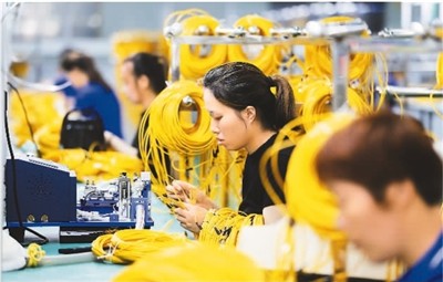 今年以來,安徽省淮北市加快培育戰(zhàn)新產(chǎn)業(yè)鏈,提升戰(zhàn)新產(chǎn)業(yè)整體競爭力,使戰(zhàn)新產(chǎn)業(yè)成為經(jīng)濟(jì)增長新引擎。圖為淮北市濉溪經(jīng)濟(jì)開發(fā)區(qū)內(nèi)的一家光通信技術(shù)企業(yè)的工人在生產(chǎn)車間加工光通信產(chǎn)品。萬善朝攝(人民視覺)