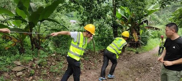 由于光纜恢復(fù)區(qū)域地勢險峻,搶修難度大,搶修人員結(jié)合現(xiàn)場實際情況后決定采用無人機(jī)牽引技術(shù)布放光纜,這樣省時、省力又安全!