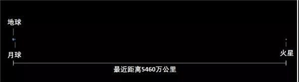▲最近時(shí)火星和地球的距離相比于地月距離的比例。來(lái)源:果殼