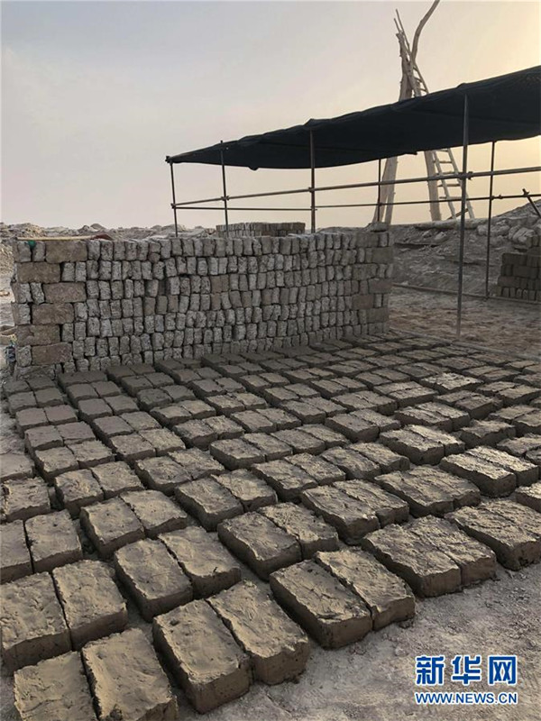 工作人員選取樓蘭古城外圍的土料制備的土坯(6月23日攝,手機照片)。新華社發(fā)(中鐵西北科學研究院有限公司提供)