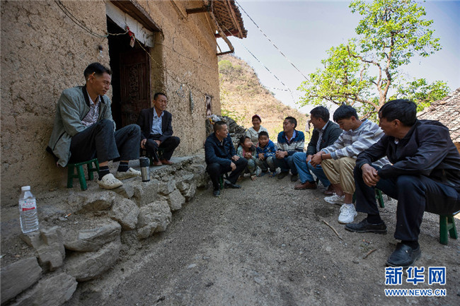 搬遷當天,掛鉤幫扶干部和鄉(xiāng)鄰們上門道賀,掛鉤幫扶干部希望李本艷的父母——李守朝和陶大煥,能聽從安排、努力工作、勤勞致富,給孩子一個幸福的未來(攝于4月2日)。新華網發(fā)(鮑禹 攝)