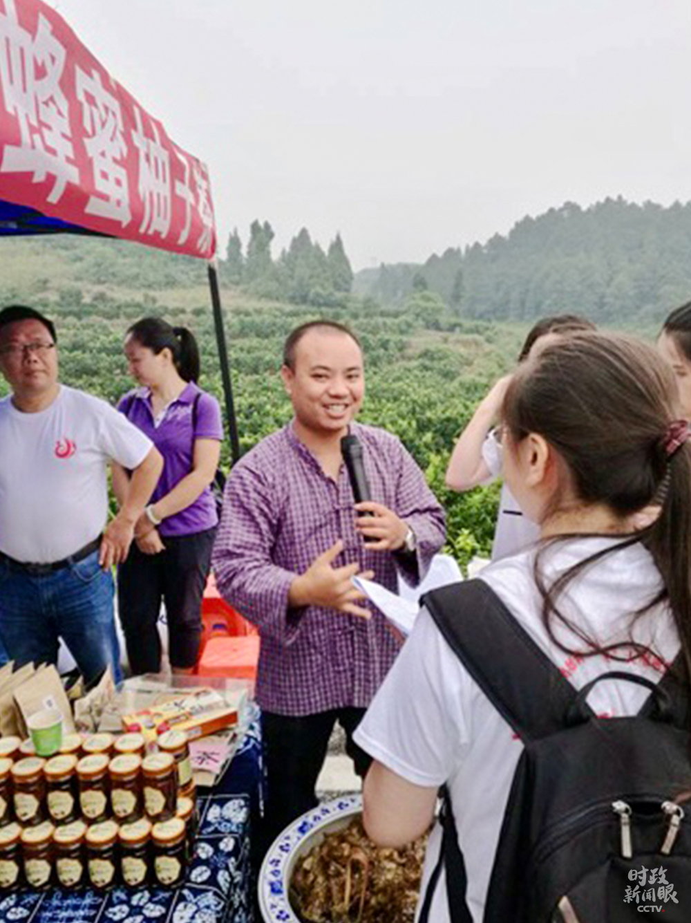 △周祖輝今年4月被評為“2020年全國向上向善好青年”。這是他向游客推介家鄉(xiāng)特產(chǎn)。