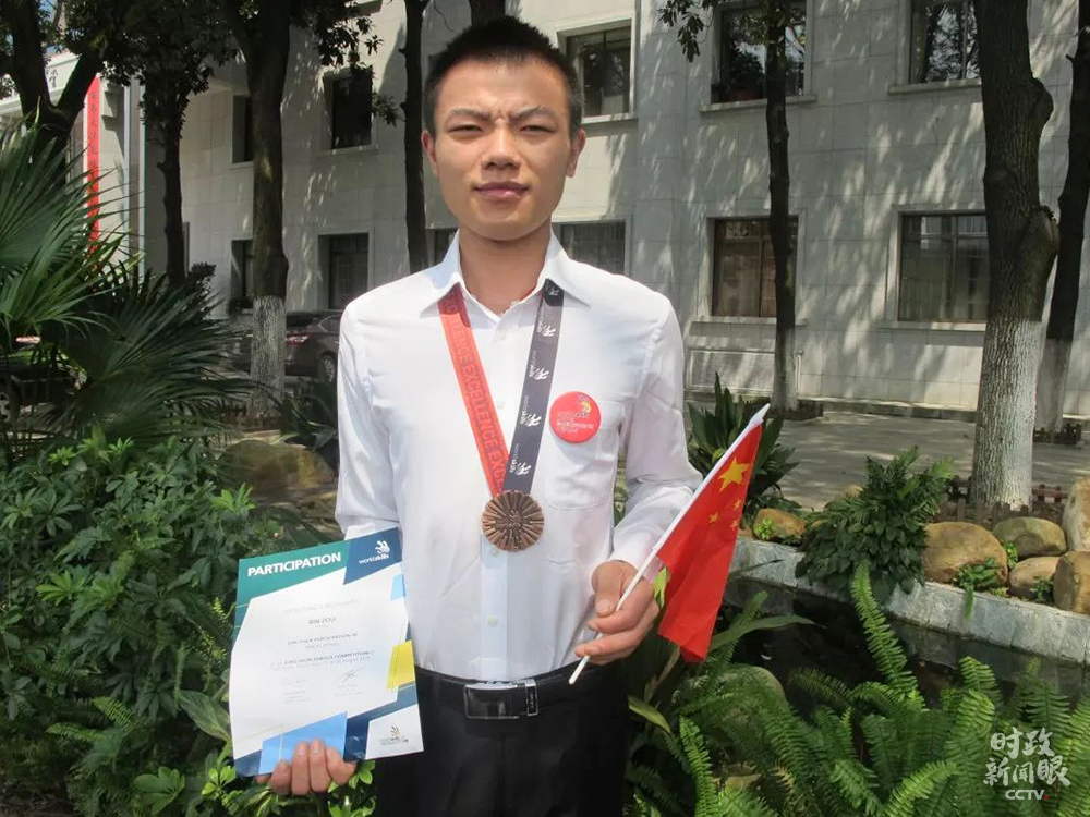 △鄒彬在第43屆世界技能大賽砌筑項目獲得優(yōu)勝獎。