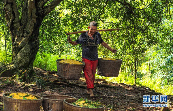 9月24日,四川省瀘州市江陽(yáng)區(qū)鄰玉街道天堂村的村民在打收桂花。金秋時(shí)節(jié),四川省瀘州市江陽(yáng)區(qū)鄰玉街道天堂村的村民們忙著打收桂花,制作桂花糕等美食,迎接中秋佳節(jié)的到來。新華社發(fā)(劉學(xué)懿攝)