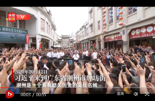 10月12日下午,正在廣東考察的習(xí)近平總書記來(lái)到潮州古城,看商鋪、問(wèn)物價(jià),同當(dāng)?shù)厝罕娪H切交流,了解歷史文化街區(qū)保護(hù)和復(fù)商復(fù)市等情況。
