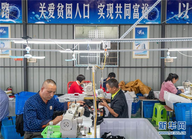 10月13日,在湖南省邵陽(yáng)市城步縣殘疾人楊淑亭開(kāi)辦的湖南七七科技股份有限公司生產(chǎn)車間里,工人們?cè)谥谱髅褡逄厣嘲?991年出生的苗族姑娘楊淑亭因車禍胸部以下高位截癱,通過(guò)不斷學(xué)習(xí)摸索,開(kāi)辦網(wǎng)店并注冊(cè)了自己的企業(yè),與周邊貧困家庭簽訂合作協(xié)議,制作售賣(mài)具有民族特色的背包和仿真花卉,帶動(dòng)上千名貧困人員及59名殘疾人就業(yè)。