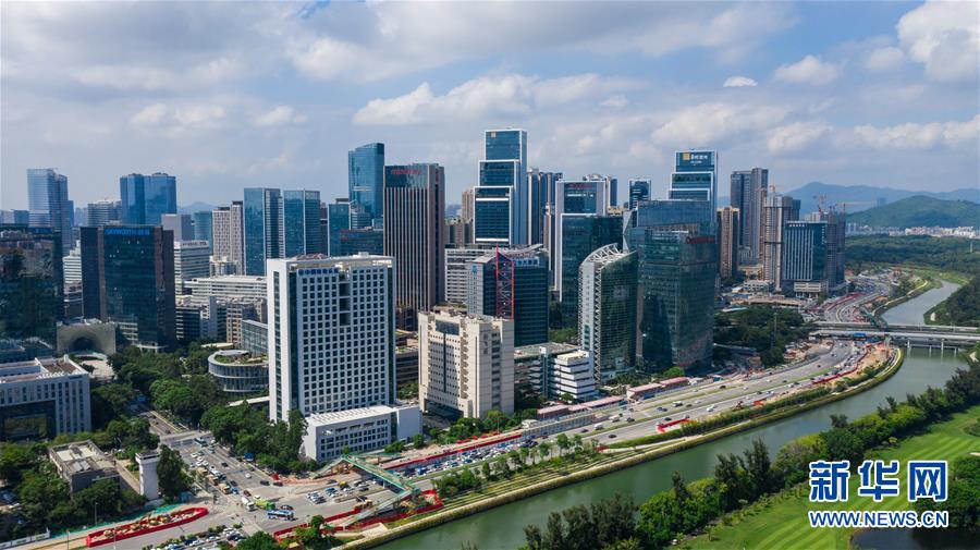 深圳市南山區(qū)大沙河畔的科技園(2020年9月27日攝,無人機照片)。新華社記者 毛思倩 攝