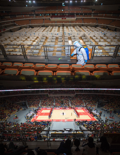 拼版照片上圖:3月8日,武漢體育中心方艙醫(yī)院送走最后一批痊愈患者,正式休艙。隨后,艙內(nèi)進(jìn)行全面消毒工作。這是志愿者在進(jìn)行消殺作業(yè)。下圖:10月4日,武漢體育中心方艙醫(yī)院休艙后舉行首場(chǎng)大型賽事。新華社記者 肖藝九 攝