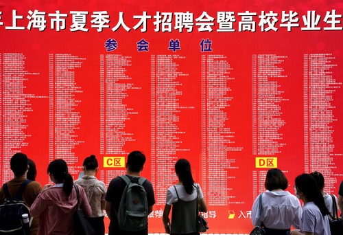 在“2020年上海市夏季人才招聘會(huì)暨高校畢業(yè)生面洽會(huì)”上,求職者了解招聘單位信息(7月25日攝)。新華社記者 劉穎 攝