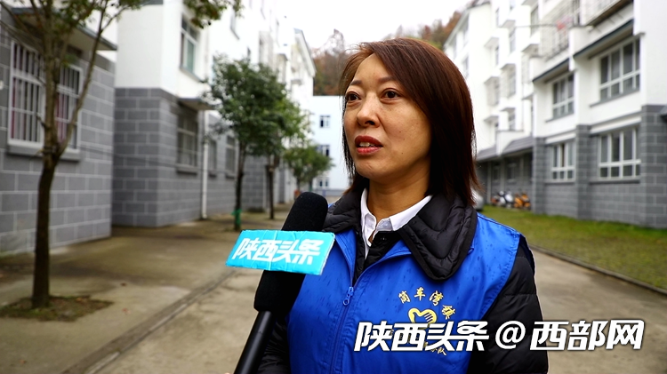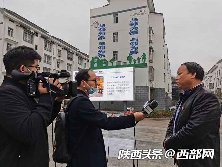 寧陜縣筒車(chē)灣社區(qū)干部向媒體介紹鄰里守望相助故事