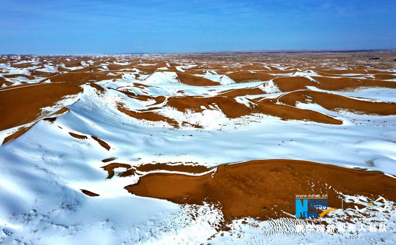 原標(biāo)題:【“飛閱”中國(guó)】甘肅民勤:大漠雪霽美如畫(huà)