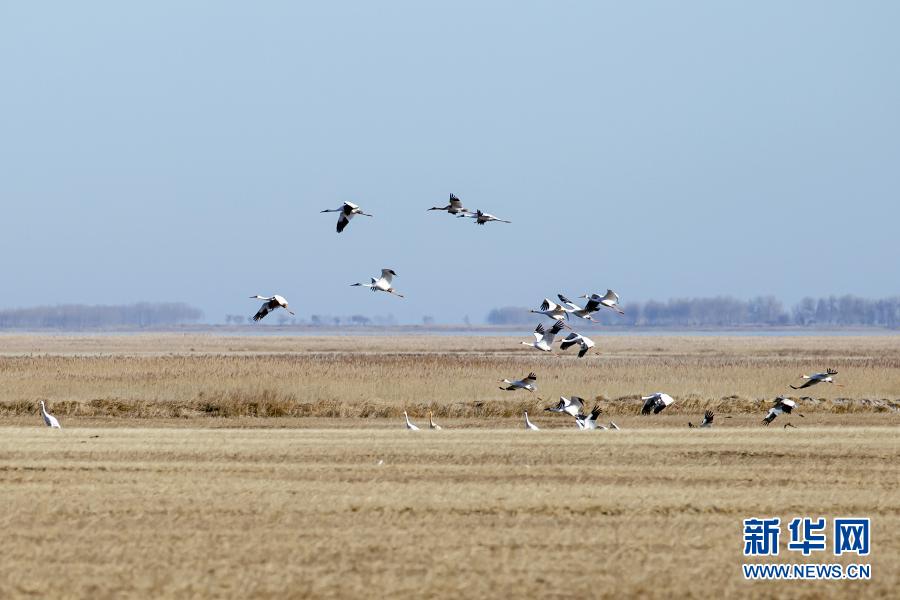 在內蒙古扎賚特旗圖牧吉國家級自然保護區(qū)拍攝的白鶴(11月6日攝)?!⌒氯A社發(fā)(畢力格 攝)