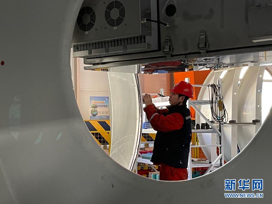 11月26日,在金風風電設備科技有限公司生產車間,工人在加工風機組件?!⌒氯A社記者 安路蒙 攝