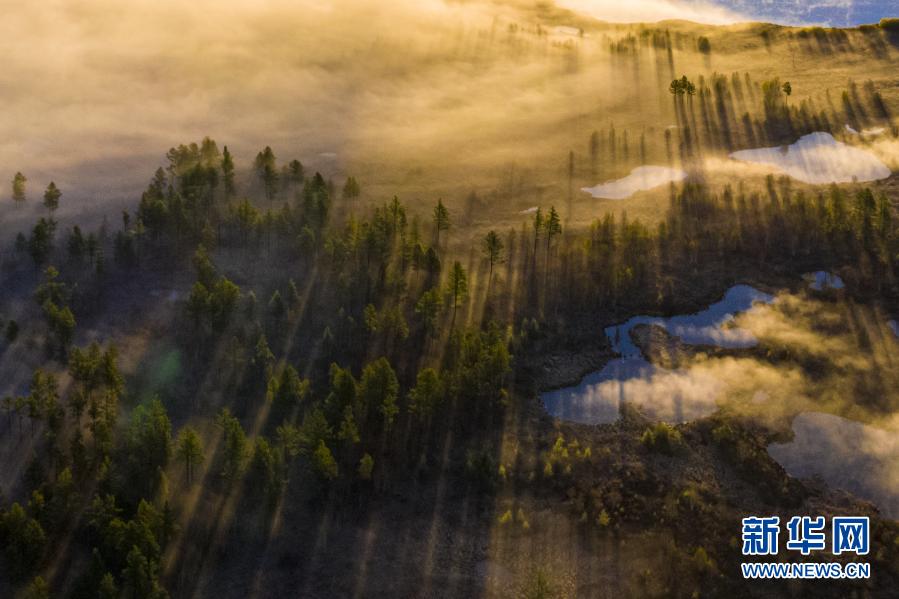 內蒙古阿爾山市杜鵑湖畔霧氣繚繞(5月28日攝)?!⌒氯A社發(fā)(畢力格 攝)
