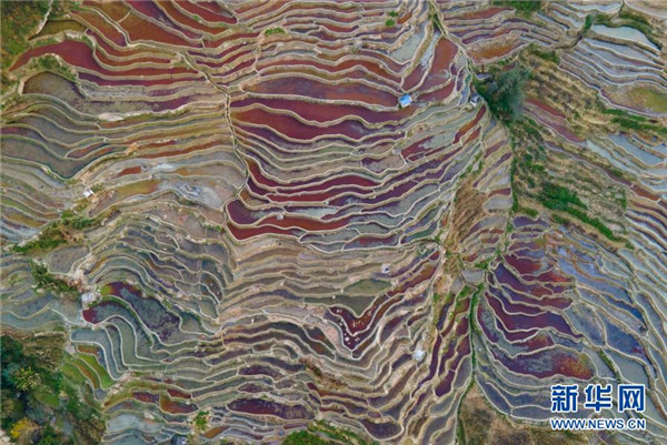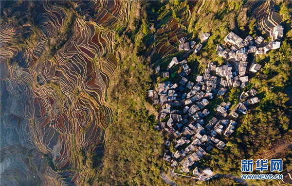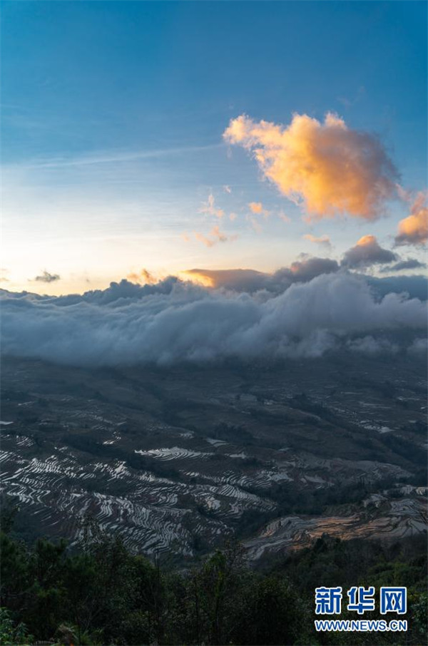 這是1月6日傍晚拍攝的哈尼梯田(無人機(jī)照片)。