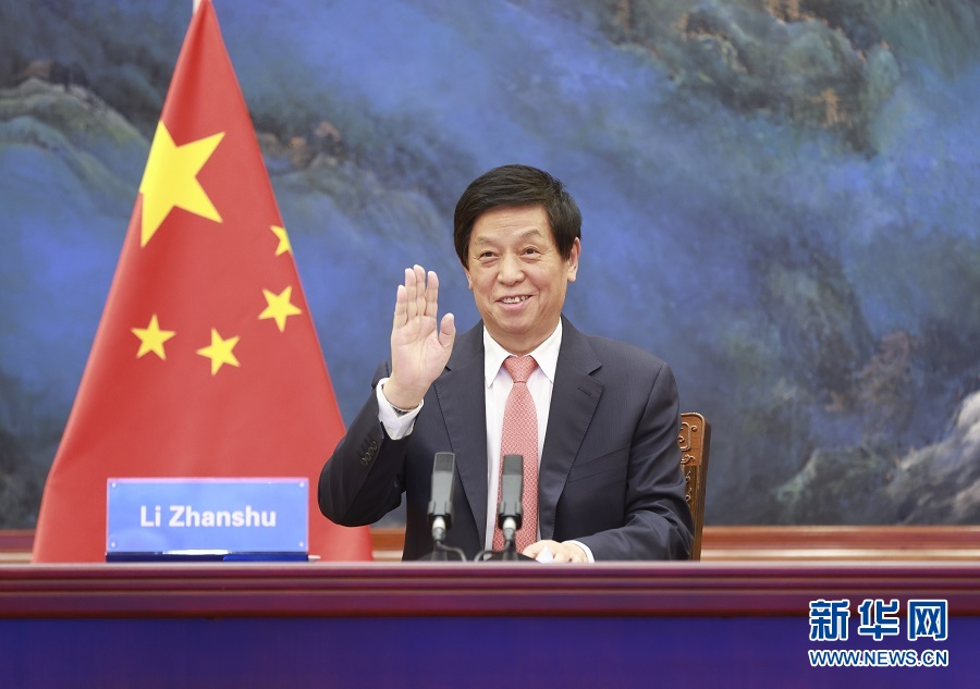 1月18日,全國(guó)人大常委會(huì)委員長(zhǎng)栗戰(zhàn)書在北京人民大會(huì)堂出席全國(guó)人大和柬埔寨國(guó)會(huì)視頻交流活動(dòng)開幕式。 新華社記者 丁林 攝