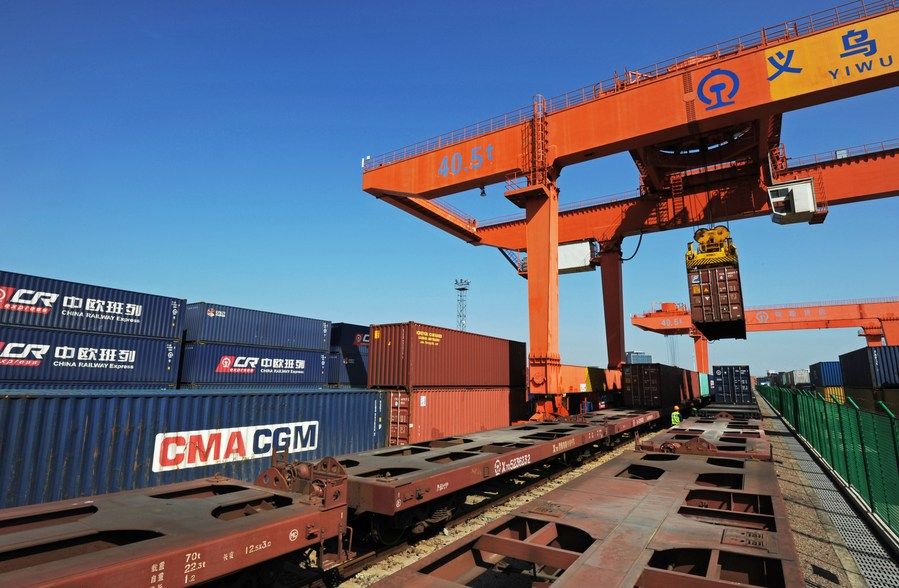 2014年11月18日,中歐班列(義烏)——“義新歐”從義烏西站始發(fā),途經(jīng)哈薩克斯坦、俄羅斯、白俄羅斯、波蘭等國(guó)家,歷時(shí)21天,最終抵達(dá)西班牙首都馬德里。這條全長(zhǎng)1.3萬(wàn)公里的中歐班列鐵路線,打開(kāi)了義烏和歐洲經(jīng)貿(mào)往來(lái)的新通道。