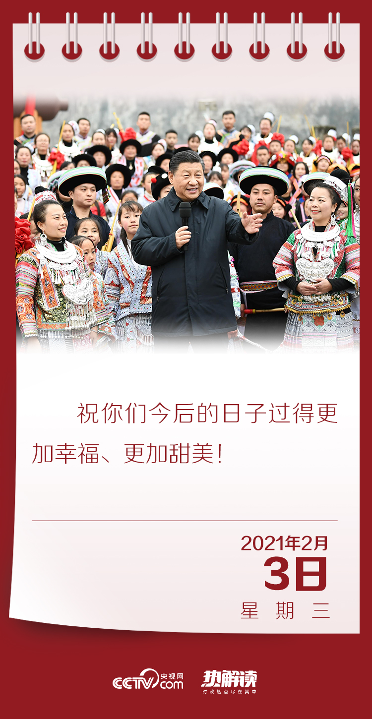 春節(jié)前夕,習(xí)近平總書記赴貴州考察調(diào)研并看望慰問(wèn)基層干部群眾。2月3日下午,他來(lái)到畢節(jié)市黔西縣,走進(jìn)新仁苗族鄉(xiāng)化屋村看望鄉(xiāng)親們。在村文化廣場(chǎng),總書記同參加少數(shù)民族春節(jié)民俗活動(dòng)的群眾親切交流,并向全國(guó)各族人民致以新春祝福。