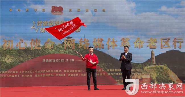 主會(huì)場(chǎng)活動(dòng)結(jié)束后,陜西分會(huì)場(chǎng)“在這里讀懂初心使命——網(wǎng)絡(luò)媒體革命老區(qū)行”網(wǎng)絡(luò)主題采訪活動(dòng)在延安寶塔山游客廣場(chǎng)正式啟動(dòng)。趙剛在分會(huì)場(chǎng)啟動(dòng)儀式上講話并向采訪團(tuán)授旗。陜西省委網(wǎng)信辦主任鮑永能主持啟動(dòng)儀式。中央網(wǎng)信辦網(wǎng)絡(luò)傳播局副局長(zhǎng)邵波濤,陜西省委網(wǎng)信辦副主任王利參加啟動(dòng)儀式。延安市委副書(shū)記、政法委書(shū)記嚴(yán)漢平在啟動(dòng)儀式上致辭。媒體團(tuán)代表中國(guó)新聞網(wǎng)負(fù)責(zé)人吳慶才作表態(tài)發(fā)言。