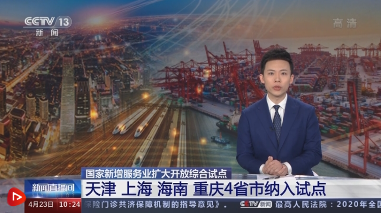 央視網(wǎng)消息:商務(wù)部今天(4月23日)舉行專題新聞發(fā)布會,外資司有關(guān)負(fù)責(zé)人介紹,在支持北京建設(shè)國家服務(wù)業(yè)擴大開放綜合示范區(qū)的同時,日前,國務(wù)院批復(fù)同意將天津、上海、海南、重慶4省市納入服務(wù)業(yè)擴大開放綜合試點。