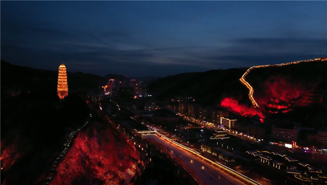 夜幕下的延安。