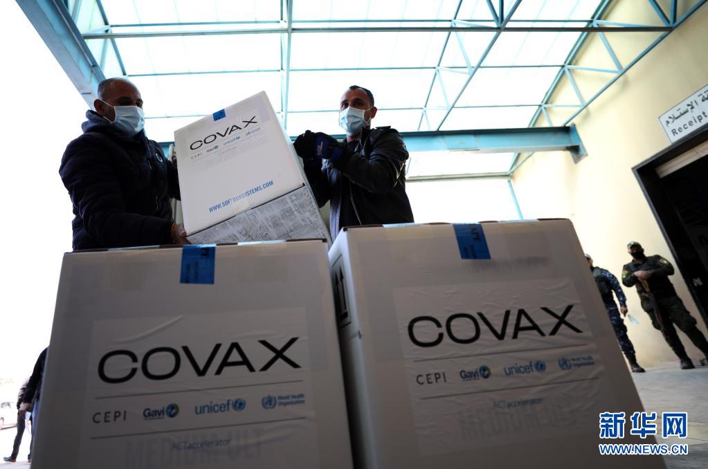 3月17日,在約旦河西岸城市納布盧斯附近的薩利姆鎮(zhèn),巴勒斯坦工作人員搬運(yùn)通過世界衛(wèi)生組織主導(dǎo)的“新冠肺炎疫苗實(shí)施計(jì)劃(COVAX)”收到的新冠疫苗。新華社發(fā)(艾曼·諾巴尼攝)