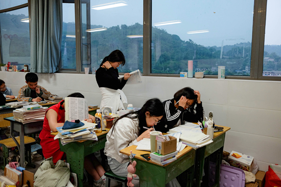 這一年中,復(fù)讀班沒有開過家長會(huì),“叫家長”也很難成為對(duì)付學(xué)生的“撒手锏”。當(dāng)?shù)乩蠋熼_玩笑說:“給家長打電話,四個(gè)有三個(gè)在打麻將,叫也叫不來的。”更現(xiàn)實(shí)的情況是,很多家長在外務(wù)工,有些人幾年才回一次家,孩子與祖父母一起生活的“隔代教育”在縣里相當(dāng)普遍。張偉的父母常年在廣州打工,他也想以后去廣州生活。復(fù)讀這一年,他一直和考入大學(xué)的同學(xué)保持聯(lián)系,不斷完善自己對(duì)大學(xué)的理解。