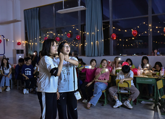 班上有15名學(xué)生來自同一個(gè)應(yīng)屆班級(jí),這種陪伴在一定程度上緩解了他們的心理壓力。和我的高中生活相比,這里輕松多了:不公開考試排名,不會(huì)將高考生排除在學(xué)校的文體活動(dòng)之外,女孩子們可以化妝、留長發(fā),還有人穿著漢服來上課。