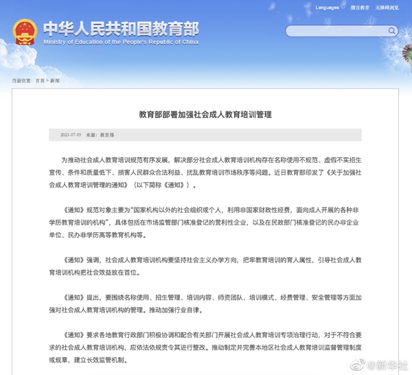 記者19日從教育部了解到,為推動(dòng)社會(huì)成人教育培訓(xùn)規(guī)范有序發(fā)展,解決部分社會(huì)成人教育培訓(xùn)機(jī)構(gòu)存在名稱使用不規(guī)范、虛假不實(shí)招生宣傳、條件和質(zhì)量低下、損害人民群眾合法利益、擾亂教育培訓(xùn)市場秩序等問題,教育部近日印發(fā)《關(guān)于加強(qiáng)社會(huì)成人教育培訓(xùn)管理的通知》。通知強(qiáng)調(diào),要圍繞名稱使用、招生管理、培訓(xùn)內(nèi)容、師資團(tuán)隊(duì)、培訓(xùn)模式、經(jīng)費(fèi)管理、安全管理等方面加強(qiáng)對社會(huì)成人教育培訓(xùn)機(jī)構(gòu)的管理。通知要求各地教育行政部門積極協(xié)調(diào)和配合有關(guān)部門開展社會(huì)成人教育培訓(xùn)專項(xiàng)治理行動(dòng)。(記者胡浩)