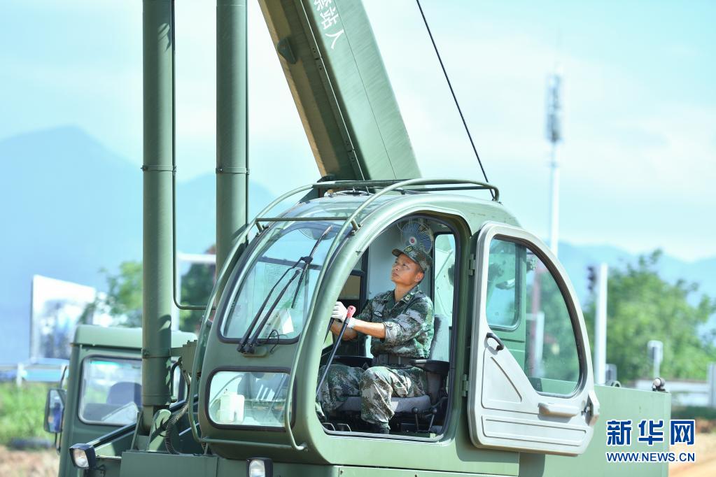 戰(zhàn)略支援部隊(duì)某大隊(duì)一級軍士長高玉華操作工程機(jī)械(7月23日攝)。 新華社記者 陳澤國 攝