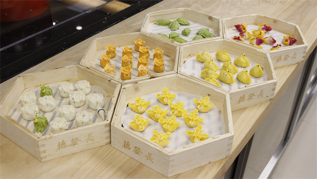 走出低谷,馬順莉認(rèn)定了這份工作,也立志要在這個崗位上發(fā)光發(fā)熱。馬順莉說:“我們有一個研發(fā)小組,二十幾個人,從1985年到現(xiàn)在,一直研發(fā)餃子宴。從當(dāng)時的十幾個品種,發(fā)展到現(xiàn)在,我們有318個品種的餃子;烹調(diào)工藝上,從蒸、煮,發(fā)展到蒸、煮、煎、炸、烙、烤、燴等多種烹調(diào)方法,真正體現(xiàn)了‘一餃一形一態(tài) 百餃百餡百味’的特點。”