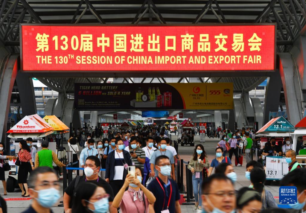 10月15日,參展人員在第130屆廣交會現場。新華社記者 劉大偉 攝
