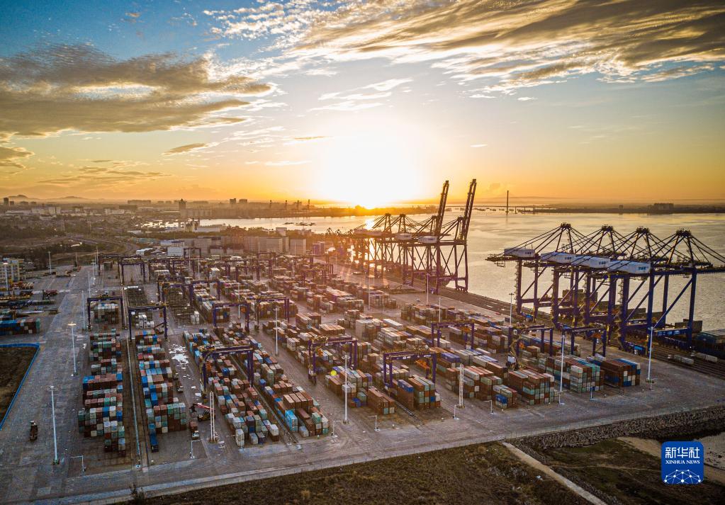 這是5月26日在海南洋浦經濟開發(fā)區(qū)拍攝的洋浦國際集裝箱碼頭(無人機照片)。新華社記者 蒲曉旭 攝