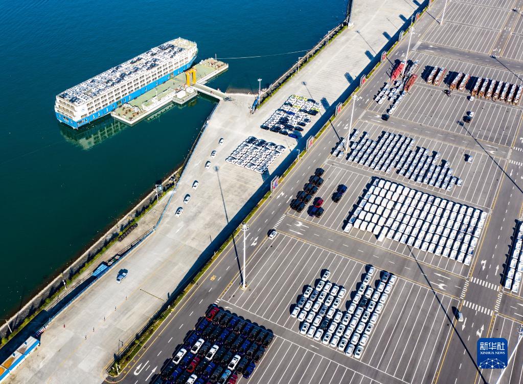 這是三峽庫(kù)區(qū)湖北省宜昌市秭歸縣秭歸港車輛分撥轉(zhuǎn)運(yùn)現(xiàn)場(chǎng)(2020年11月13日攝,無(wú)人機(jī)照片)。新華社發(fā)(鄭家裕 攝)