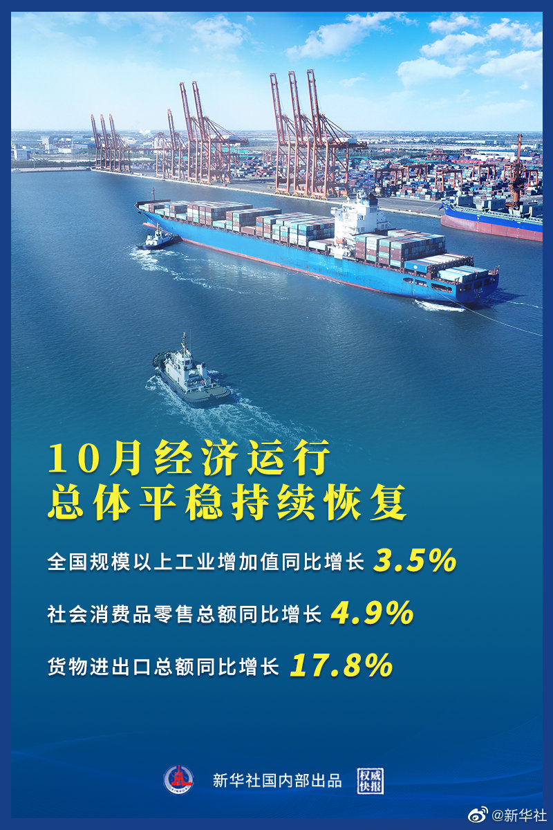 “總的來看,10月份經(jīng)濟(jì)運行總體平穩(wěn)持續(xù)恢復(fù),發(fā)展韌性繼續(xù)顯現(xiàn)。但也要看到,當(dāng)前國際環(huán)境依然復(fù)雜嚴(yán)峻,不穩(wěn)定不確定因素仍然較多,國內(nèi)發(fā)展中階段性結(jié)構(gòu)性矛盾猶存,保持經(jīng)濟(jì)穩(wěn)定恢復(fù)仍需加力。”國家統(tǒng)計局新聞發(fā)言人、國民經(jīng)濟(jì)綜合統(tǒng)計司司長付凌暉說。