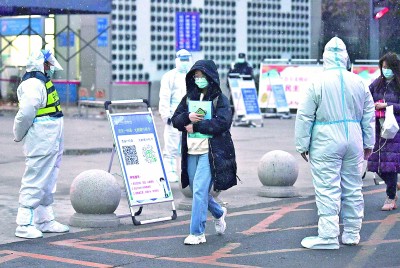 12月25日,考生在西安石油大學考點測溫。趙喜軍攝/光明圖片
