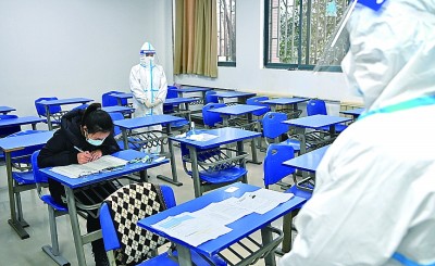 25日6時30分,西北工業(yè)大學兩名監(jiān)考老師領到試卷并拿上記錄儀,在全程錄像的情況下,前往隔離考生所在的隔離酒店,上門送考。另一邊,在西安智選假日隔離酒店內(nèi),一位報考長安大學的密接考生的研究生考試正在進行。據(jù)工作人員介紹,現(xiàn)場的考務人員執(zhí)行二級防疫標準,佩戴口罩、護目鏡,身穿防護服進行監(jiān)考。