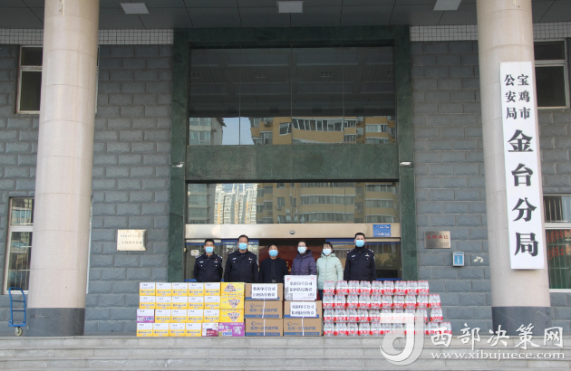 西部決策網(wǎng)訊(記者帥華鋒  通訊員 寧鵬)疫情無情,人間有愛!12月29日下午,寶雞市鼎新印章制作有限公司白建莉經(jīng)理一行4人來到寶雞市金臺公安分局,為金臺分局一線民輔警捐贈價值1萬余元防疫物資,助力金臺公安抗擊疫情。受副區(qū)長、分局黨委書記、局長鄒天虎委托,分局黨委委員、副局長陳永亮,分局黨委委員常廣利,警務(wù)保障室主任路軍縣接受愛心企業(yè)的捐贈。