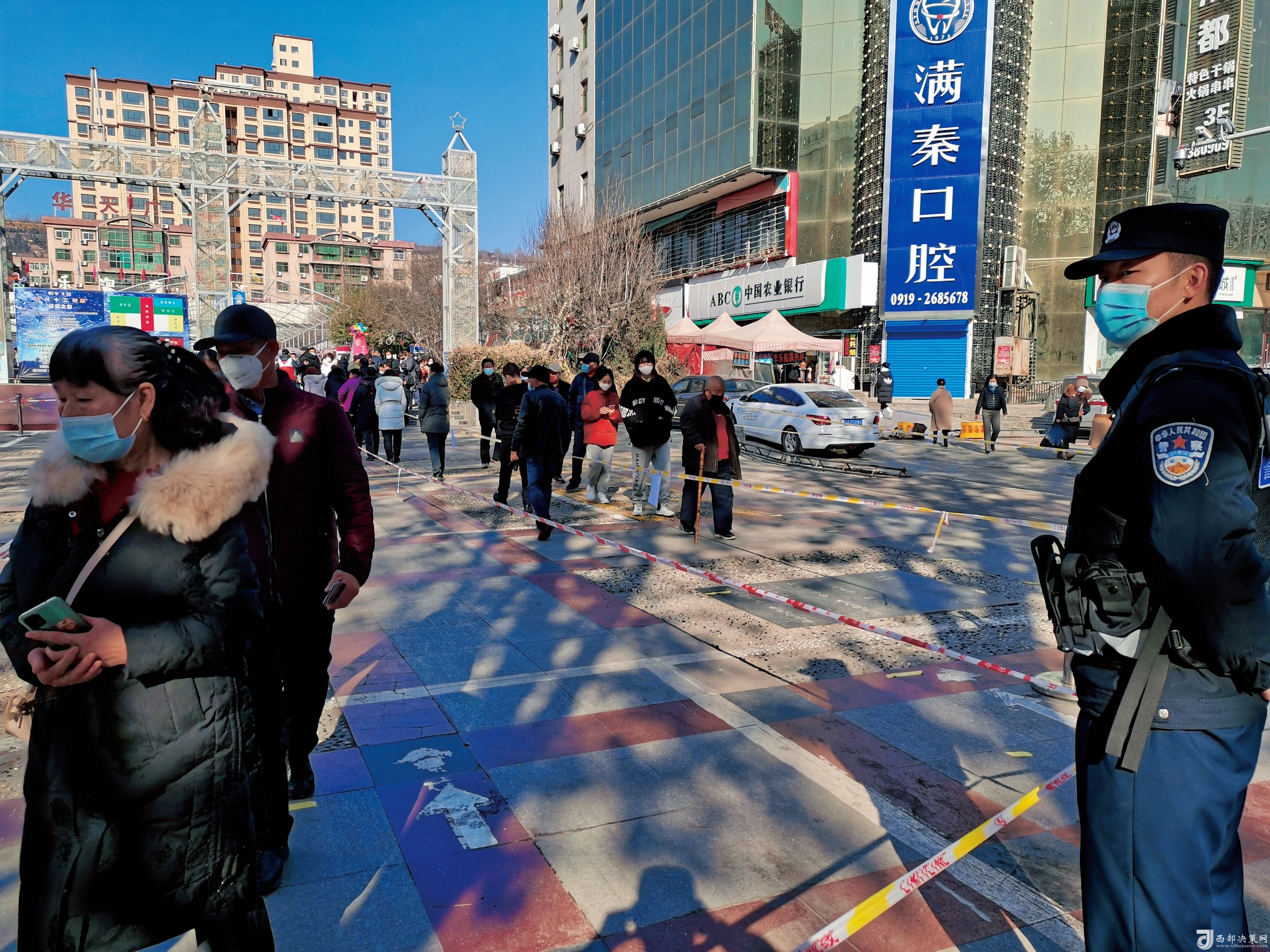 因為疫情肆虐,銅川市王益區(qū)華天廣場專門設立了核酸檢測站,在每天早上八點到下午六點,為源源不段的市民進行核酸檢測,紅旗街派出所隨即展開了維護秩序的工作,向檢測站提供建議,倡導大家井然有序,保持距離。
