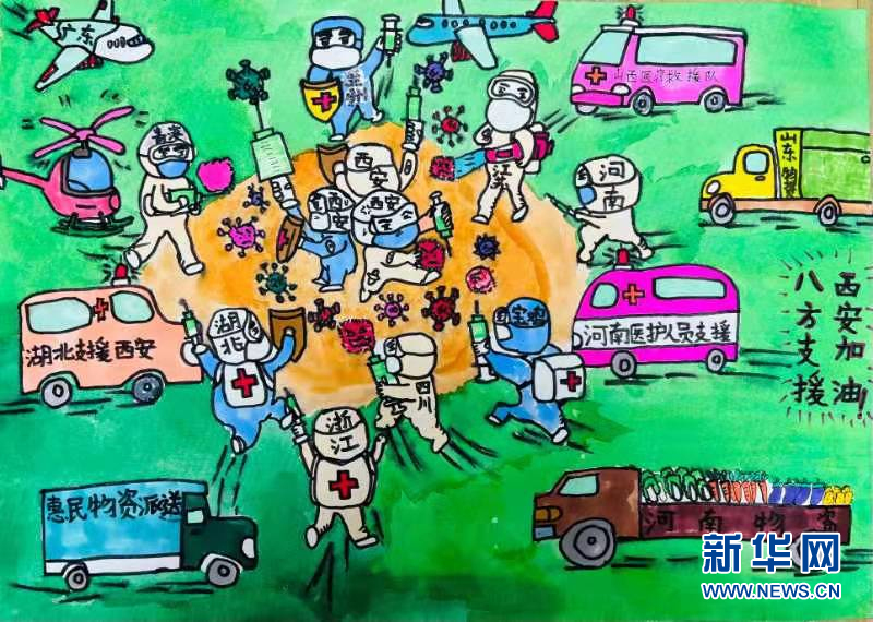 1月2日,西安市鄠邑區(qū)甘亭中心學(xué)校的孩子們用最自己的方式宣傳居家防疫知識(shí),用手中的畫筆表達(dá)他們對(duì)抗疫英雄的贊美,為抗疫一線的英雄加油!為西安加油!(張思思 趙影超 王展榮)