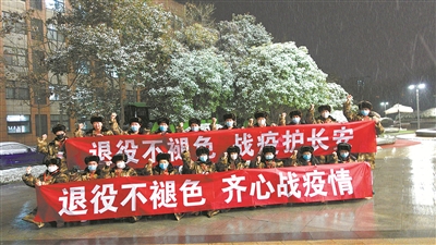 歲末,突如其來的新冠肺炎疫情,讓陜西省西安市按下了暫停鍵。西安高校云集,學(xué)子匯聚。在疫情防控的關(guān)鍵時刻,一封封“請戰(zhàn)書”、一個個紅手印出現(xiàn)在各大高校。“我們是退役軍人,我們志愿加入這場沒有硝煙的戰(zhàn)爭”“戎裝雖脫,兵心不改”“我們曾經(jīng)過部隊培養(yǎng),緊急關(guān)頭當(dāng)然要挺身而出”……西安交通大學(xué)強(qiáng)軍先鋒隊、西安建筑科技大學(xué)戰(zhàn)旗中隊、西安郵電大學(xué)國防青年突擊隊、西安外事學(xué)院利刃先鋒退役軍人志愿協(xié)會、陜西國防工業(yè)職業(yè)技術(shù)學(xué)院軍魂學(xué)社、長安大學(xué)弘毅中隊……一支支由退役大學(xué)生士兵組成的學(xué)生社團(tuán)主動請纓,戰(zhàn)斗在校園疫情防控一線。