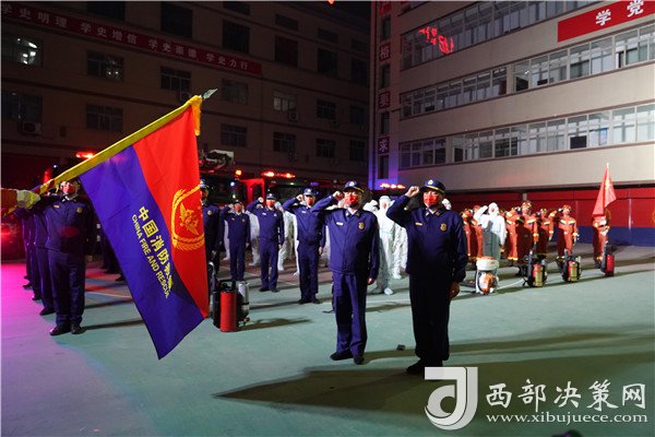 大家宣誓:“堅(jiān)決履行國(guó)家綜合性消防救援隊(duì)伍的神圣使命,英勇頑強(qiáng),不怕犧牲……為維護(hù)人民生命財(cái)產(chǎn)安全和社會(huì)穩(wěn)定,貢獻(xiàn)自己的力量!”支隊(duì)舉行疫情防控專業(yè)處置隊(duì)出征儀式后,兩支隊(duì)伍深夜奔赴疫情防控一線戰(zhàn)場(chǎng),守護(hù)延安城。