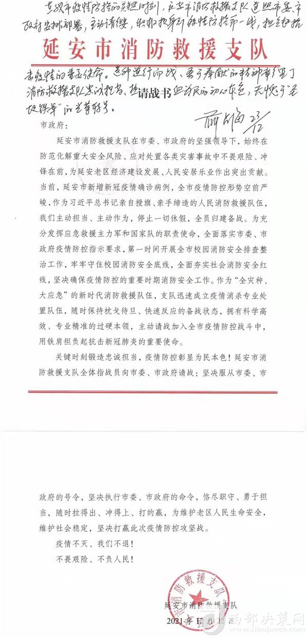 延安市消防救援支隊(duì)全體人員將以初心和使命凝聚起抗擊疫情防控的強(qiáng)大合力,堅(jiān)決打贏疫情防控阻擊戰(zhàn)。