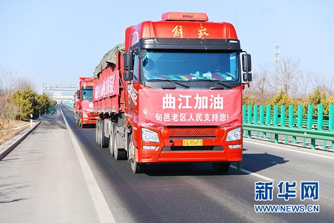 “沒有一個冬天不會過去,沒有一個春天不會到來。”2022年元旦過后,貼著車體標(biāo)語的運輸車隊,滿載著30萬陜西旬邑紅色老區(qū)父老鄉(xiāng)親暖暖的情誼直奔西安曲江。