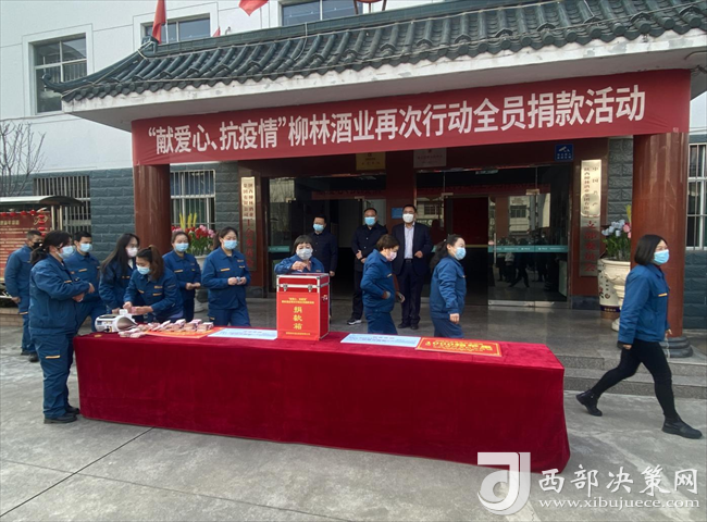 西部決策網(wǎng)訊(韓宗憲)1月10日上午,陜西柳林酒業(yè)集團(tuán)舉辦“獻(xiàn)愛心 抗疫情”全員捐款活動(dòng)。中共鳳翔區(qū)委副書記馬少輝、鳳翔區(qū)委常委、宣傳部部長賈亞斌,陜西柳林酒業(yè)集團(tuán)總經(jīng)理柳林、常務(wù)副總周峰、總工程師胡建祥、行政副總呂廣田、財(cái)務(wù)總監(jiān)楊永忠出席活動(dòng)。