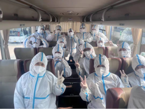 扶風(fēng)縣中醫(yī)醫(yī)院張艷艷,張會(huì)艷,馬字香,鄧文燕,朱曉敏,董曉麗,鄧乃妮,陳永會(huì),程鵬娟,呂佩娟,王萍,孫靜靜,劉娟娟,劉鑫鑫,白珍共15名護(hù)士接到通知后,在短短30分鐘內(nèi)緊急集合完畢。這支緊急抽調(diào)的隊(duì)伍由70后的護(hù)士長、80后的資深護(hù)士、90后的臨床護(hù)理骨干組成;參加抗疫人員有的家里有面臨高考的孩子、有的還需照顧的年幼的孩子和年邁的老人;接到任務(wù),我們顧不了那么多,大家放下兒女情長、放下孝順慈愛,迎著寒風(fēng),穿上“白衣鎧甲”,短暫與家人告別后,奮不顧身的奔赴西安疫情防控的第一線。