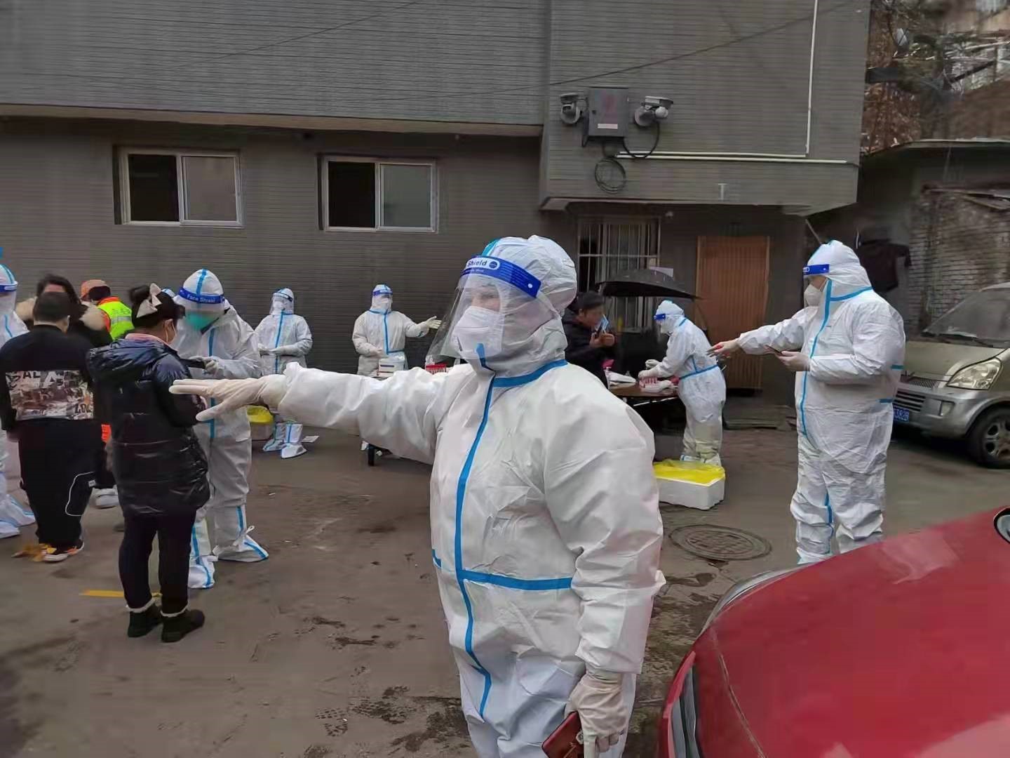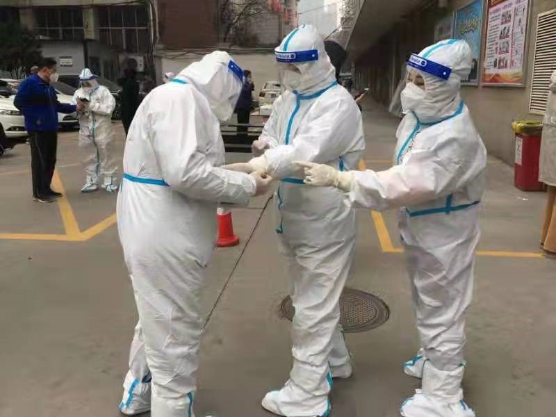 第二天一早,趙惠霞早早趕去碑林區(qū)文藝路街道文北一社區(qū)報(bào)道,開始了她志愿者生活。因?yàn)榉雷o(hù)服一旦脫下就會(huì)報(bào)廢,采集核酸樣本的醫(yī)護(hù)人員和志愿者為了不上廁所,都不敢吃飯、不敢喝水,堅(jiān)持到做完核酸才能吃飯。趙惠霞第一天下班回到家后,胃口大開,一個(gè)大暖瓶的水都喝光了。