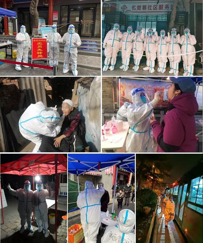支援北院門街道辦應(yīng)急核酸采樣隊(duì)黨支部成員工作剪影。陜西省中醫(yī)醫(yī)院供圖